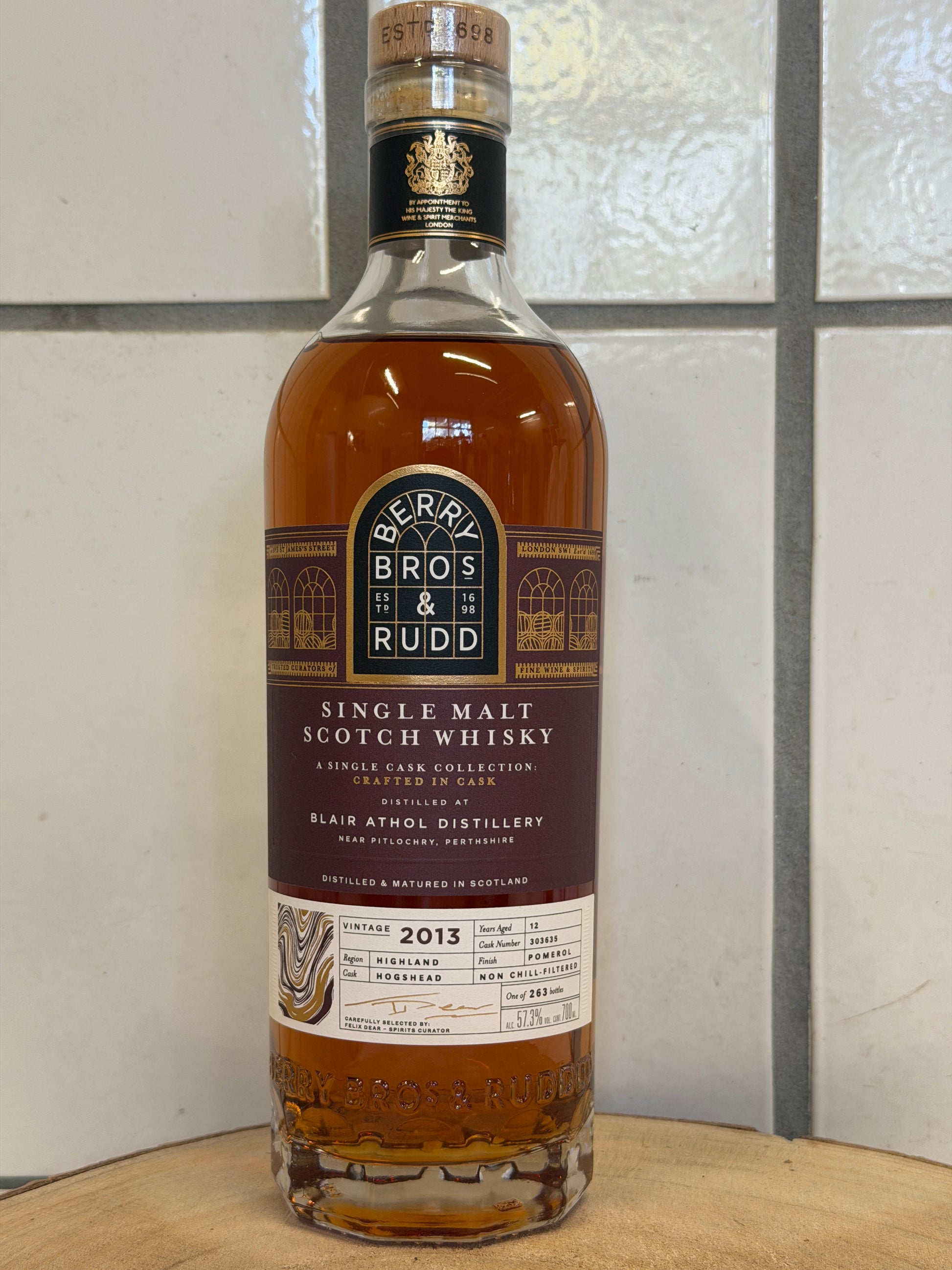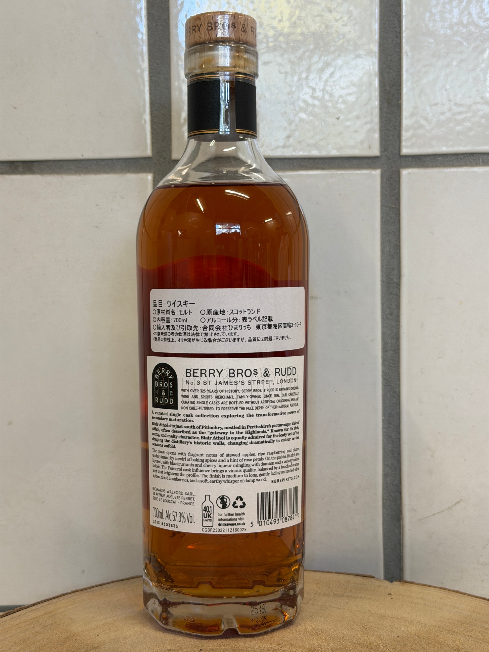 Berry Bros & Rudd Blair Athol 2013/2025 - 12 y.o. - Pomerol Cask Finish #303635は、ハイランド地方のブレアアソール蒸留所で12年熟成、最後にフランス・ポムロールの赤ワイン樽でフィニッシュしたシングルカスク・カスクストレングス(約57.3%)ウイスキーです。